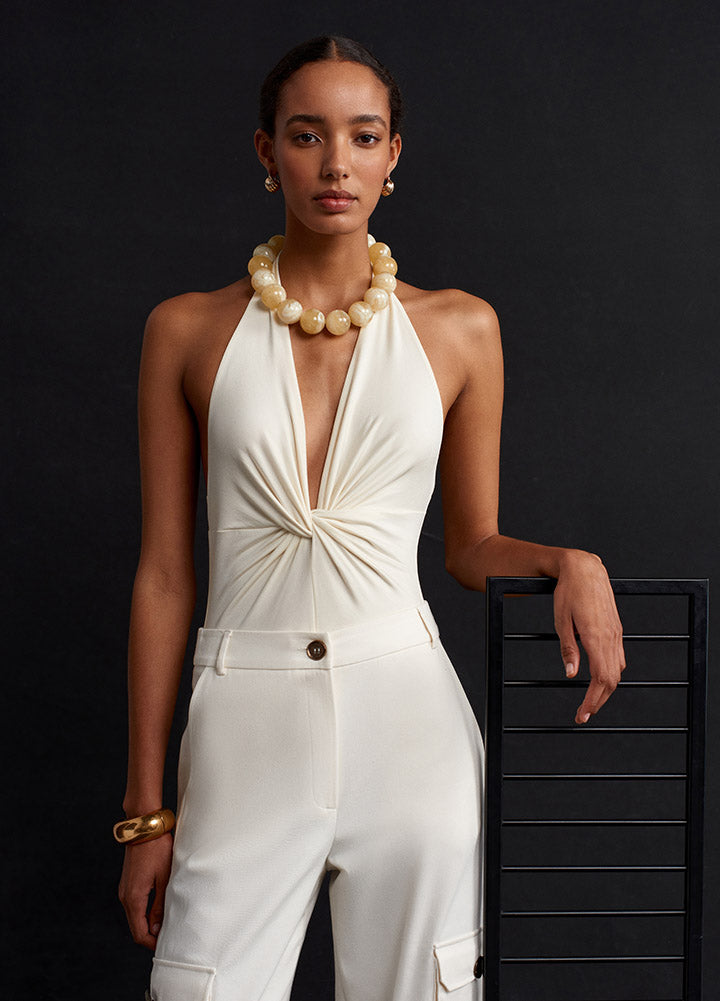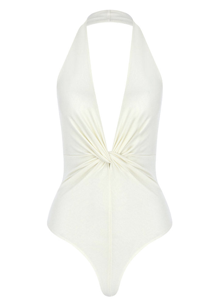 Önden bağlamalı tasarımıyla feminen bir dokunuş sunan bu bodysuit, vücuda oturan kesimiyle zarif bir siluet oluşturur. Yumuşak dokusu ve akışkan yapısıyla gün boyu konfor sağlarken, yüksek bel eteklerden geniş paça pantolonlara kadar birçok şık parça ile kolayca kombinlenir.
