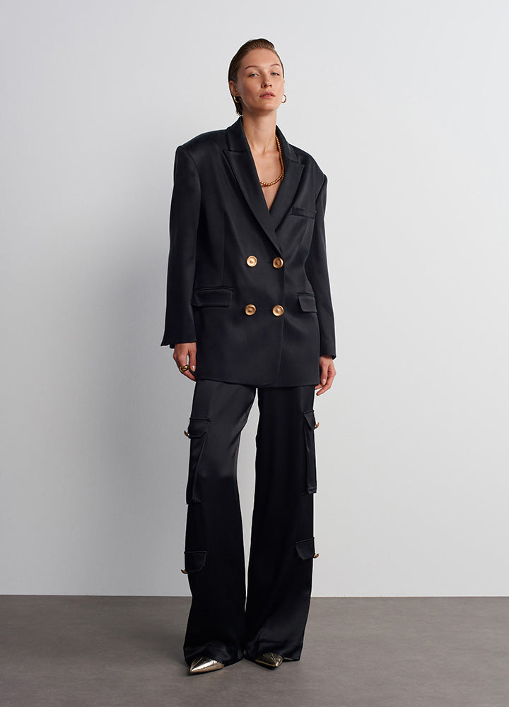 In addition to its vegan silk fabric and upcycled buttons, our production process prioritizes ethical labor practices ensuring each piece is made with care and respect. We emphasize transparency across our supply chain, from our atelier to your closet. By choosing our products, you support sustainable fashion and a cleaner planet. Join us in embracing style with purpose.