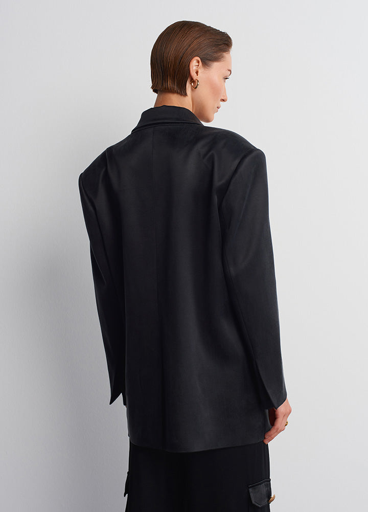 Introducing our stylish oversized night blazer, crafted from vegan silk , cupro fabric that redefine sustainability in fashion. Cupro and viscose, derived respectively from cotton linter and wood pulp, highlight their natural origins with luxurious texture and durability. These fabrics champion eco-friendly production methods, ensuring biodegradability and minimizing reliance on synthetic materials. Embrace a skirt that not only enhances your wardrobe but also supports a cleaner, greener future—one conscious step at a time that you can style this with its set of vest and skirt
