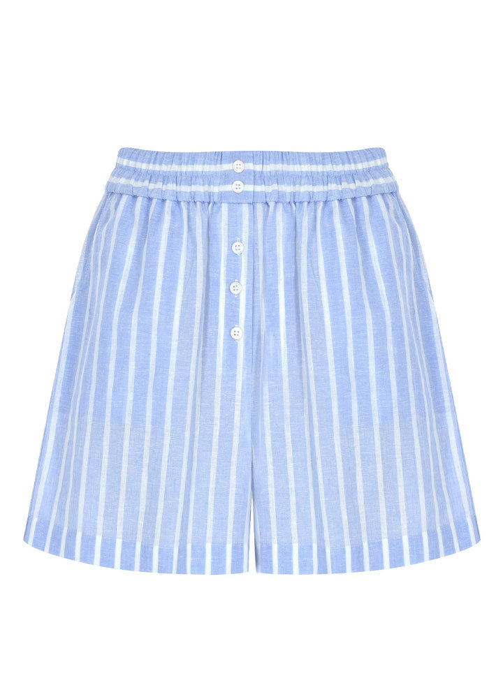 Keten ve pamuk karışımlı bu çizgili şort, hafif yapısı ve rahat kesimiyle yaz günleri için konforlu bir alternatif sunar. Takım gömlekle birlikte kullanıldığında bütüncül ve stil sahibi bir görünüm yaratırken, basic tişört veya sade bluzlarla da kolayca kombinlenebilir.