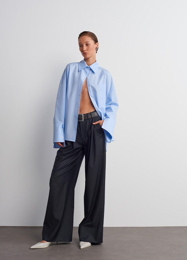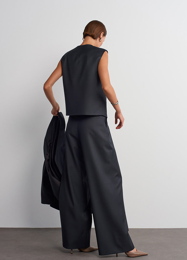 %100 yün kullanılarak üretilen bu geniş kesim pantolon, İtalyan kumaşının zarif dokusu ve üstün kalitesiyle dikkat çekiyor. Yumuşacık ve hafif parlak yüzeyi, pantolona sofistike bir hava katarken, sık dokusu uzun ömürlü kullanım ve mükemmel bir duruş sunar. Rahat kesimi ve zarif tasarımıyla hem günlük hem de özel kombinlerinizde stilinizi tamamlayacak bu pantolon, takımlık parçalar arasında zamansız bir tercih olacaktır. İtalyan kumaşının üstün işçiliği sayesinde pantolon, şıklığınızı uzun yıllar korur.