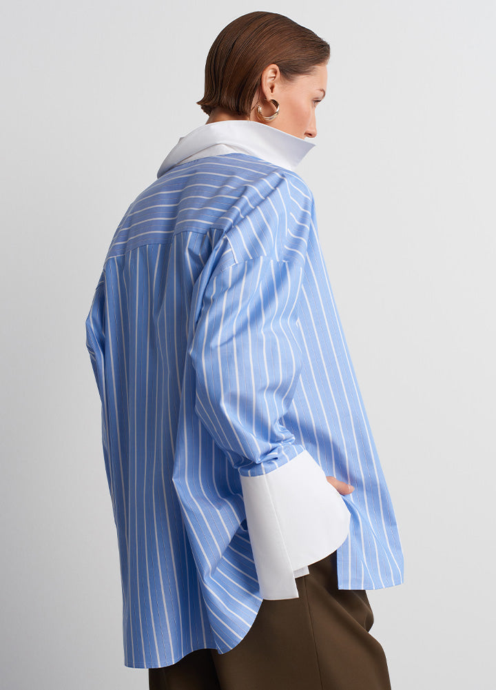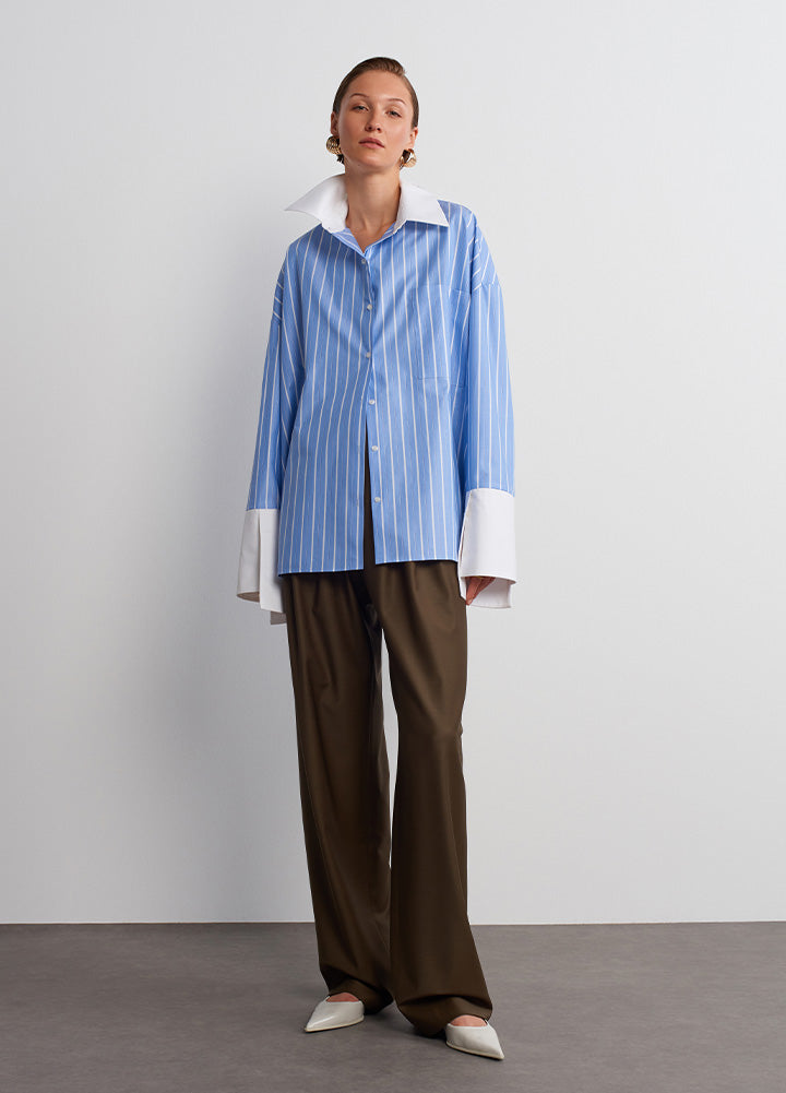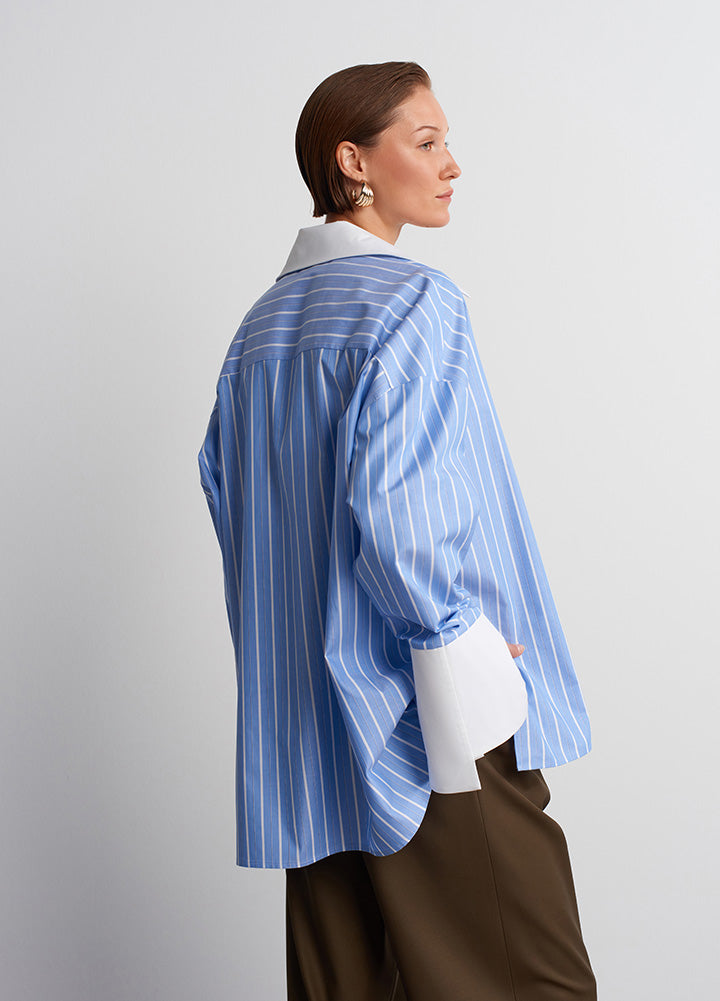 Biyobozunur %100 pamuk kumaştan üretilen çizgili oversize gömleğimiz, sürdürülebilirliği ve şıklığı bir araya getiriyor. Doğal yapısı sayesinde nefes alabilirlik ve konfor sunarken, çevre dostu biyobozunurluğuyla da bilinçli bir moda anlayışını yansıtıyor. Zamansız çizgili deseni, sofistike bir dokunuş katarak bu gömleği hem günlük kullanım hem de yarı resmi davetler için çok yönlü bir parça haline getiriyor. Klasik silueti ve hafif dokusuyla zahmetsiz bir şıklık sunarken, etik moda prensiplerine de uyum sağlıyor.