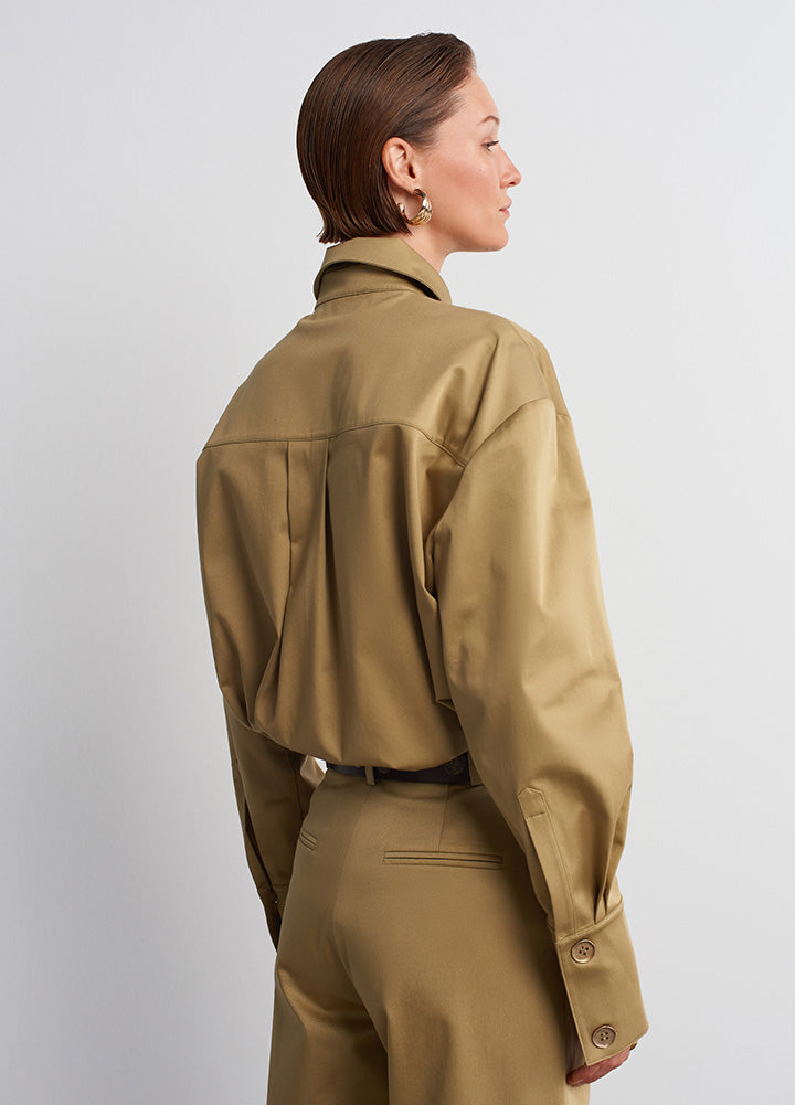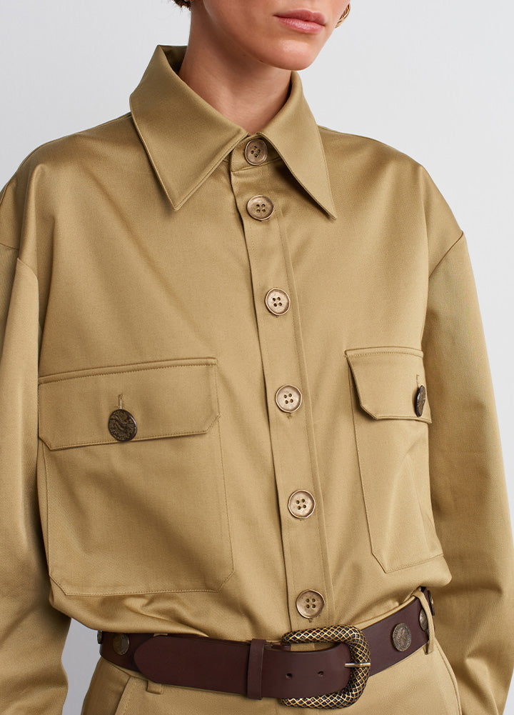 Made from a blend of upcycled cotton fabric and including upcycled buttons, our shirt embodies eco-friendly practices by repurposing materials and reducing waste. The classic design features functional pockets and a versatile silhouette suitable for any occasion.